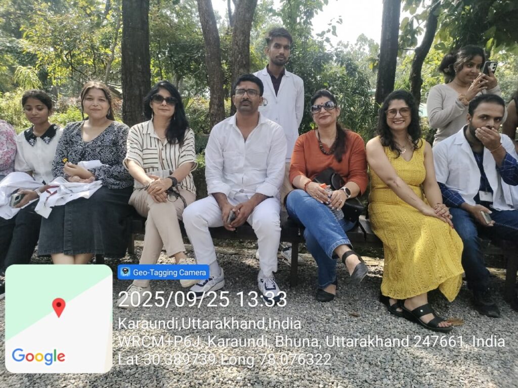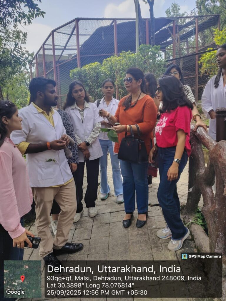 The visit was held under the guidance of Prof. Dr. Narendra Sharma (Director General) and Prof. Dr. Piyush Kapil (Principal), with supervision by faculty from the Agad Tantra, Dravya Guna, and Swasthvrit departments – including Prof. & HOD Dr. Geeta Joshi, Prof. & HOD Dr. Kanu Ohri, Dr. Deepshikha Raturi, Dr. Swati Jagotra, and Dr. Nitin Kumar.